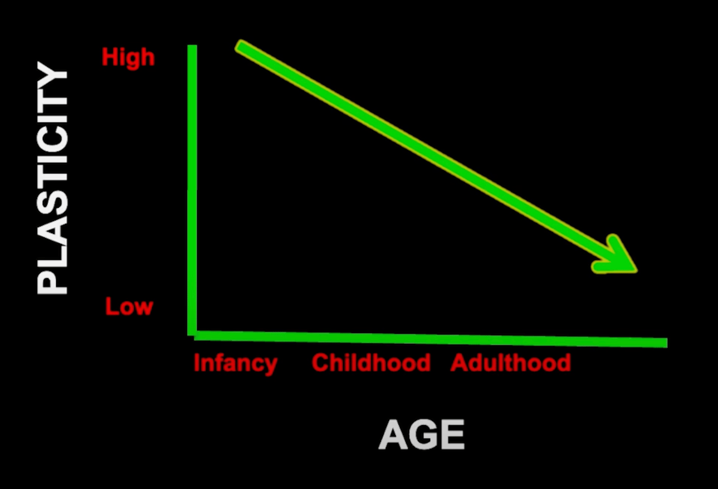 It means that Our ability to change and resculpt Neuro-Connections decreases with age.