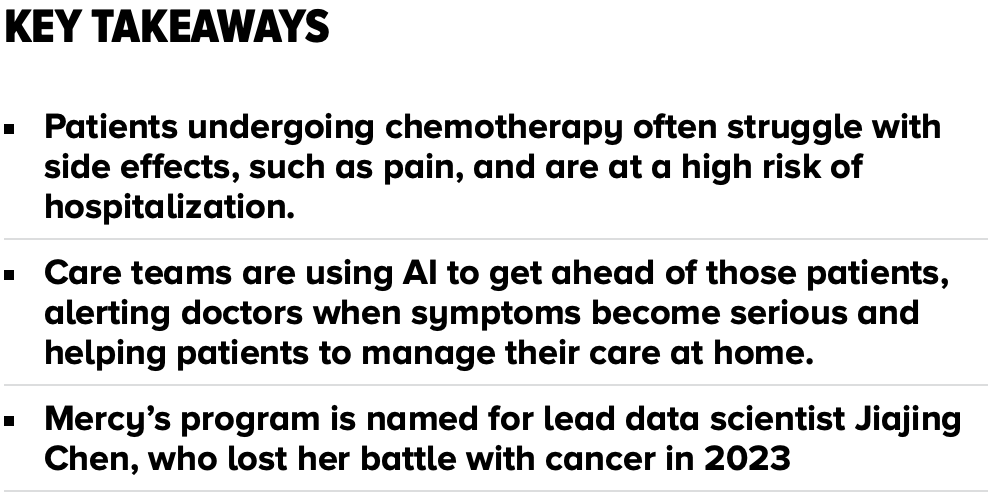 An AI driven tool used by Mercy and called the Chen Chemotherapy model is helping patients steer clear of complications after chemotherapy