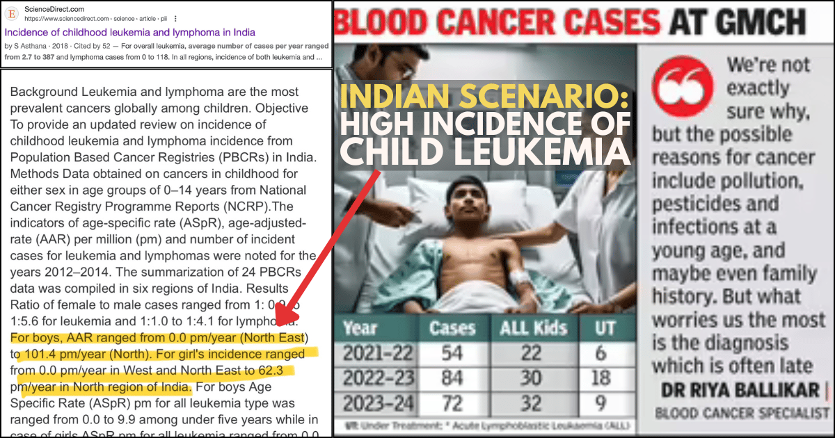 For eg. as per a news article (HERE), in a single hospital (GMCH, Nagpur, India), the Leukemia cases since FY22 increased by 60% in FY25.