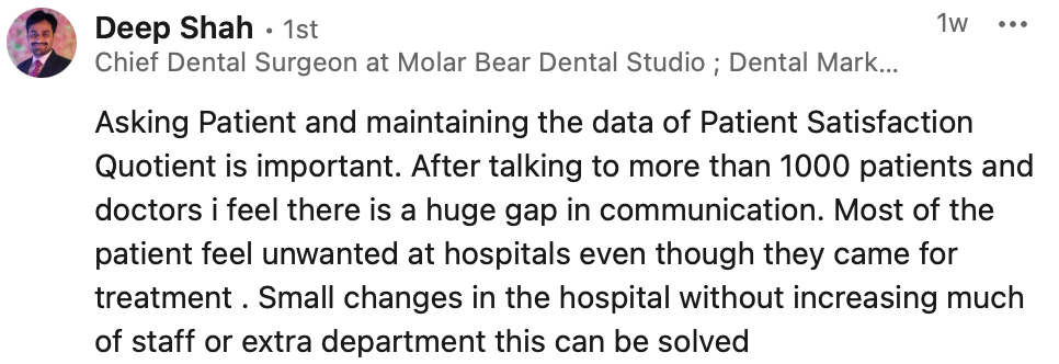In fact as per Dr. Deep Shah, Patient Satisfaction and Communication might make a patient unwanted to come back for visit. Hence, small (QUANTIFIABLE) changes can help solve this problem and create more Patient-Doctor Engagement.