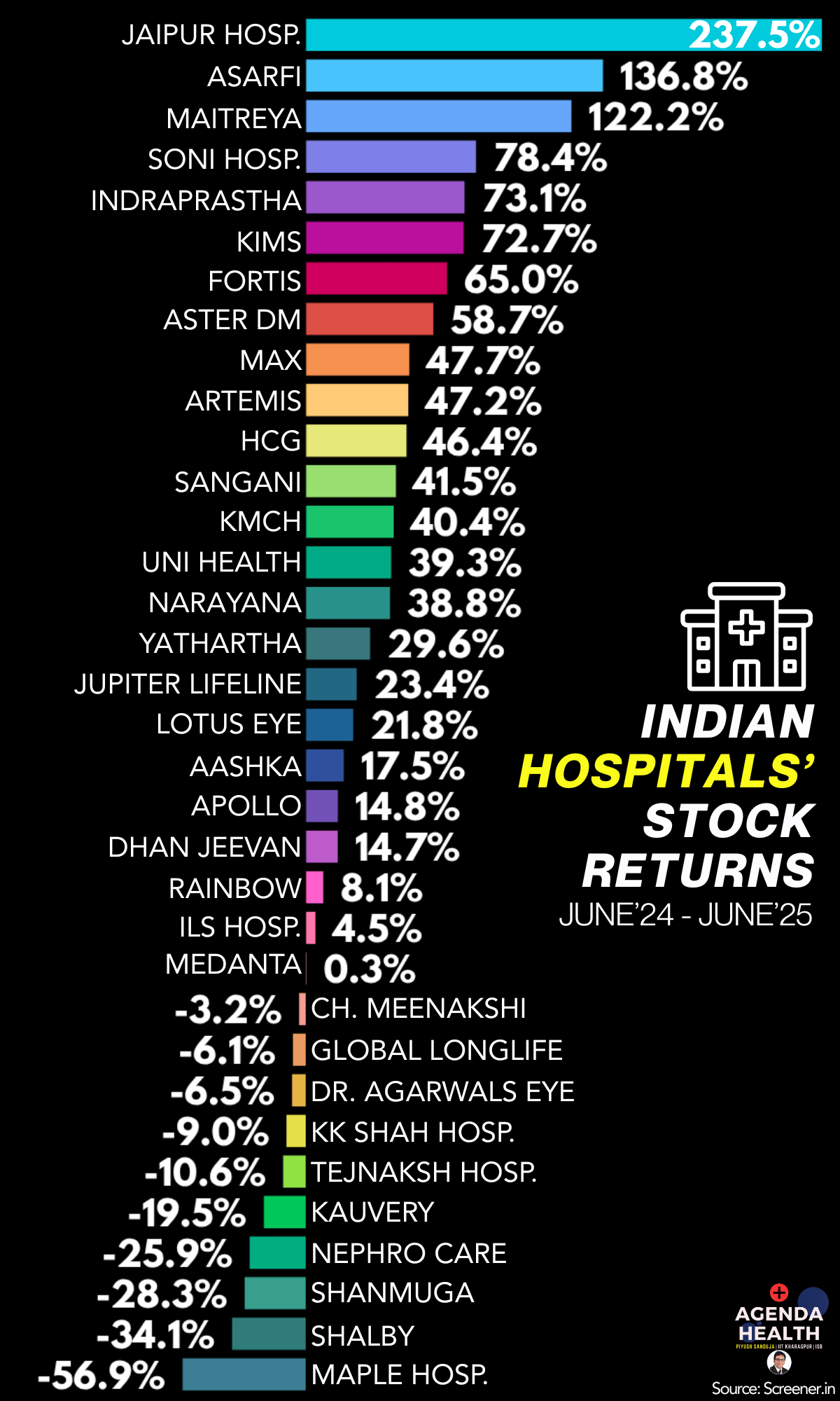1/ Indian Hospitals STOCK Returns (June'24-25)