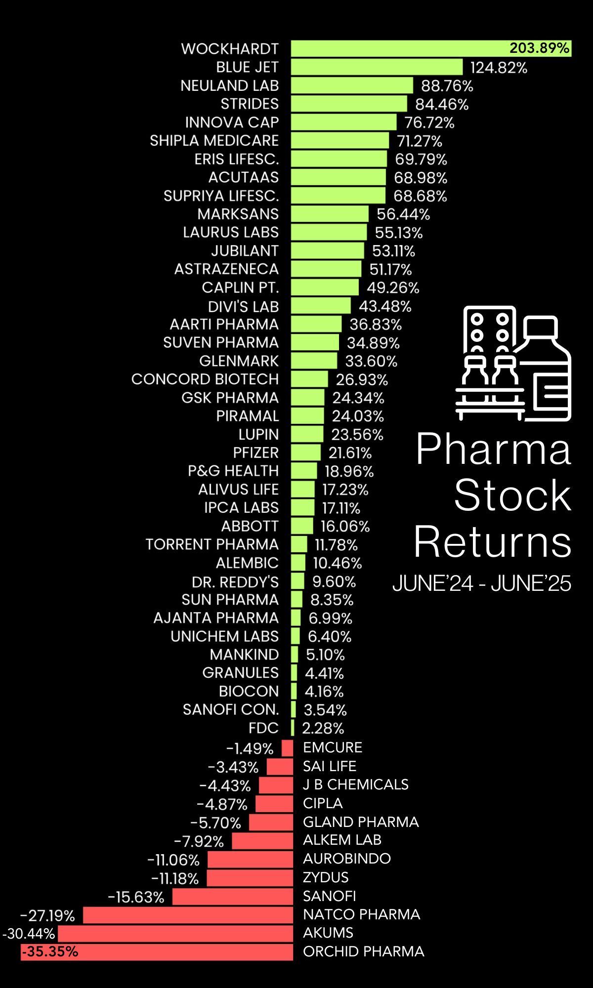 Performance of 30+ Pharma Stocks for the duration - June’24 - June’25